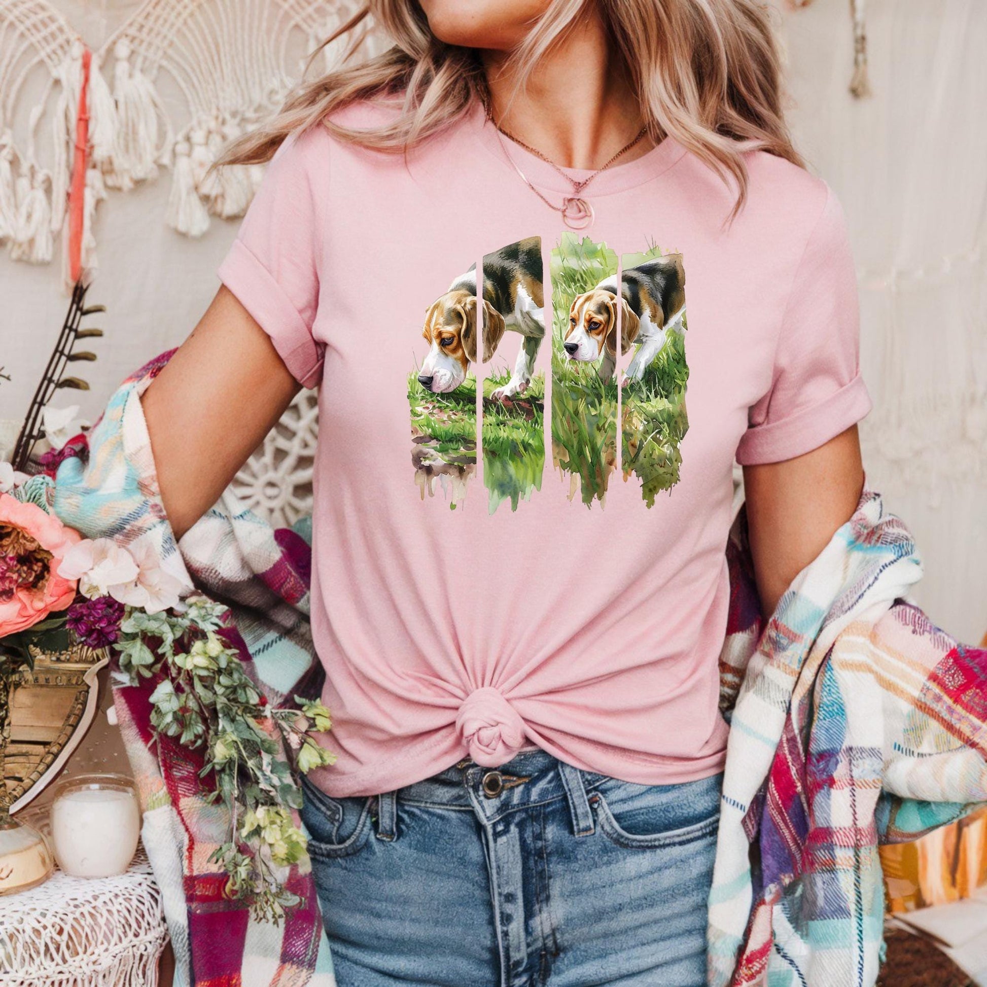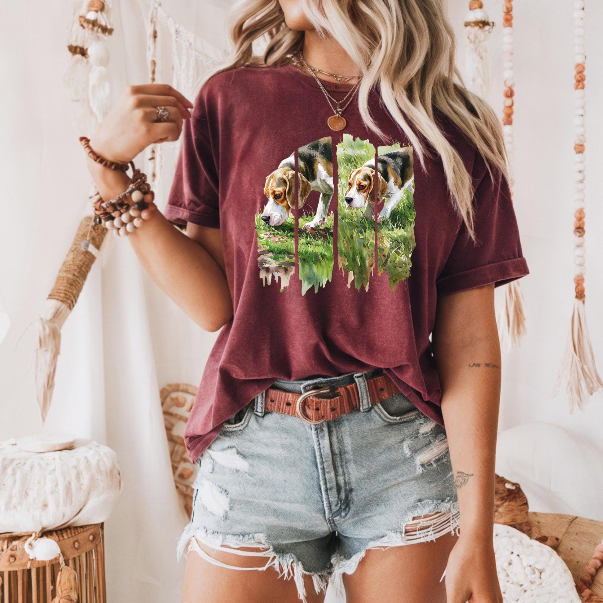 Beagle Reflection Unisex Heavy Cotton Tee, Dog Lover Gift, Pet Owner Apparel, Animal Lover Shirt, Casual Everyday Wear, Sniffing Dog Shirt