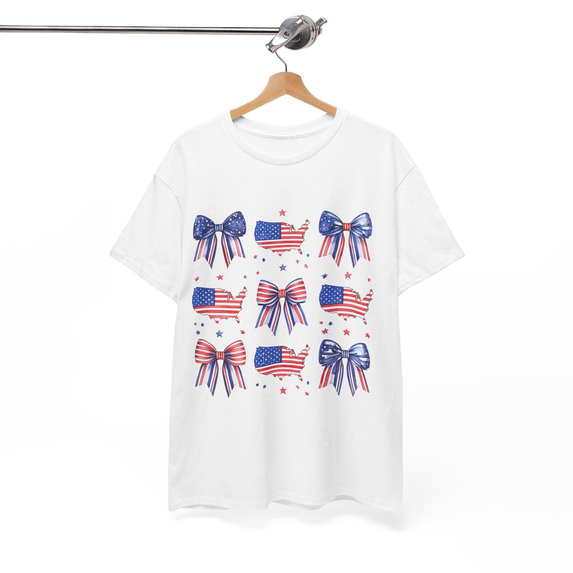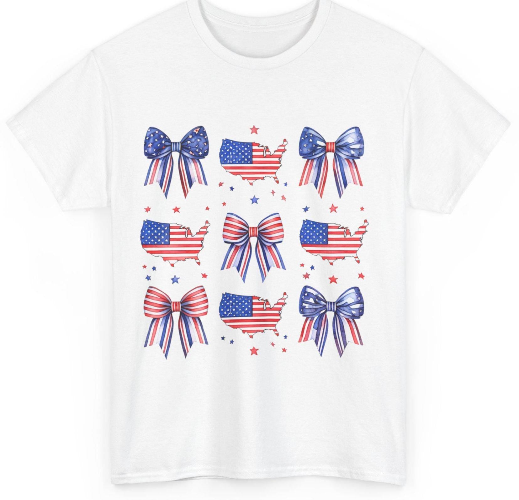 Patriotic Bow Tee, Unisex Heavy Cotton Tee with USA Theme, Great for 4th of July, Barbecues, Family Gatherings, or Everyday Casual Wear