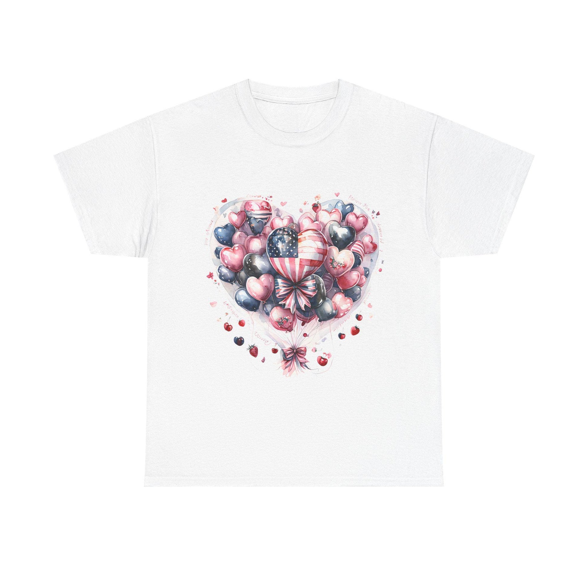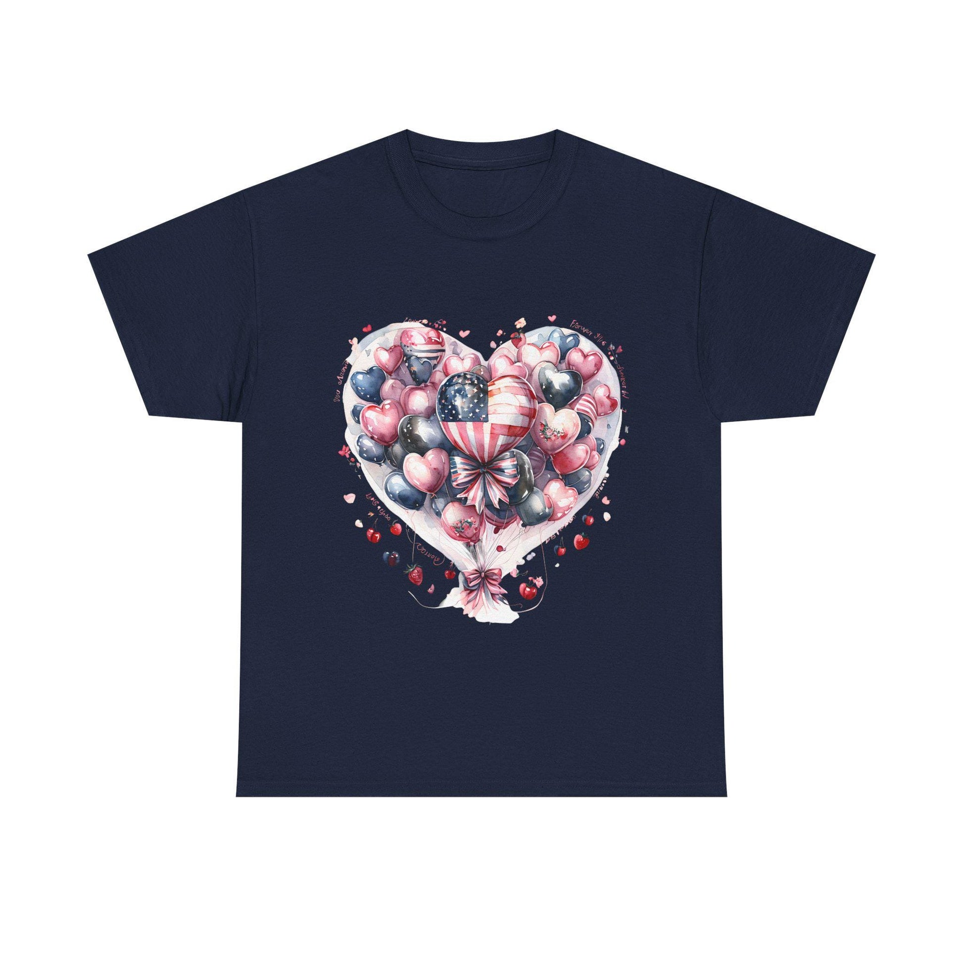 Patriotic Heart Tee, Unisex Cotton T-Shirt, American Pride Apparel, Valentine's Day Gift, Festive Love Tee