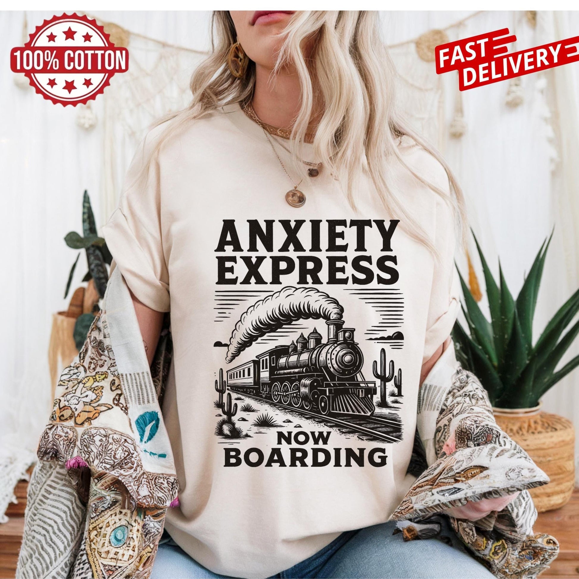 Sarcastic Anxiety Express train tee, mental health humor shirt, bold quote gift idea, retro oversized unisex t-shirt