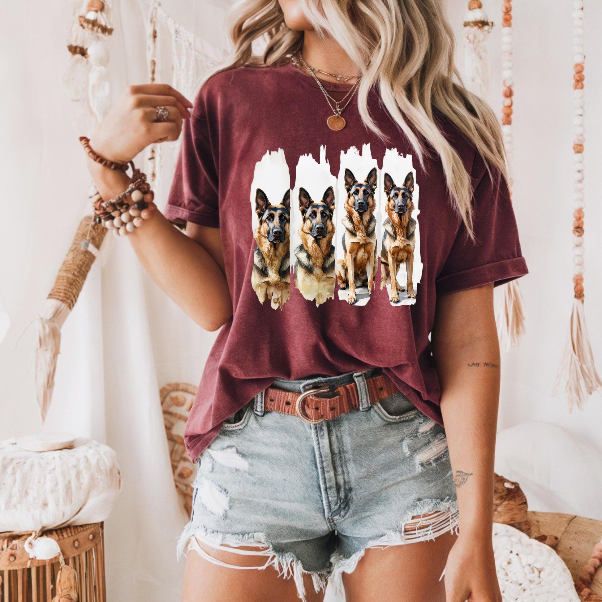 🐾 German Shepherd Art Print Set – Bold, Noble & Stunning 🖼️ Showcase the majestic beauty of German Shepherds with four striking portraits 🐕‍🦺🎨. Each print captures their intelligence, strength, and iconic tan-black coat in vivid detail. Perfect for dog lovers and art enthusiasts alike! ✔ Product Highlights: Unique, colorful design for standout style 🎨 Relaxed unisex fit for all-day comfort 😌 Durable heavy cotton fabric for lasting wear 💪 Versatile with jeans, shorts, or leggings 👖🩳 🧼 Dear: 🧺 Machine wash cold (max 30°C / 90°F) 🔄 Tumble dry low 🚫 No ironing or dry cleaning ♻️ Use non-chlorine bleach if needed ✔ Product Details: 100% ring-spun cotton Vintage washed effect Oversized unisex fit 👕 Durable screen-printed design Pre-shrunk to minimize shrinkage ⌛️ Average production time: 2-3 days. 🚚 Average delivery time: ➡️ USA delivery time: 3-5 days ➡️ EU delivery time: 3-5 days ➡️ UK delivery time: 3-5 days ➡️ Canada delivery time: 1-2 weeks ➡️ Australia delivery time: 1-3 weeks ➡️ Rest of the world: 2-5 weeks
